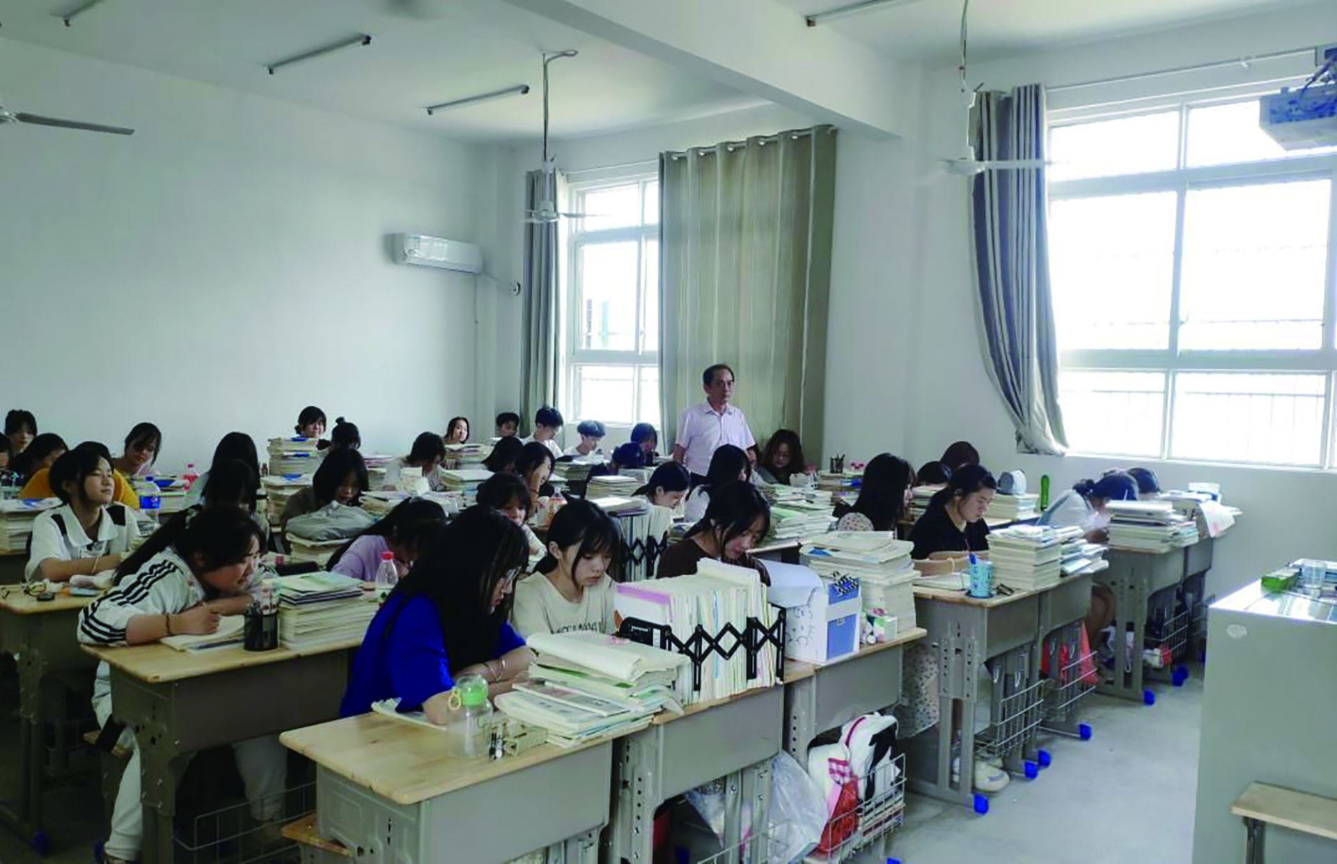 校园外部建设如火如荼,内部教学设施也是焕然一新。每一层教学楼楼梯口上方,都有一只新安装的弱电控制箱。“校园有免费wifi,教学楼视频监控已经联网,‘班班通’教学系统、校园广播系统全覆盖。有两个计算机教室,每个教室配备了50台电脑和相应教学软件,可以进行多媒体教学。”刘伟表示,力争在“十四五”期间,实现校园占地面积80亩、建筑面积6万平方米、设备设施齐全的目标,全面达到中职学校设置标准,并具备现代化中职学校的基本条件。