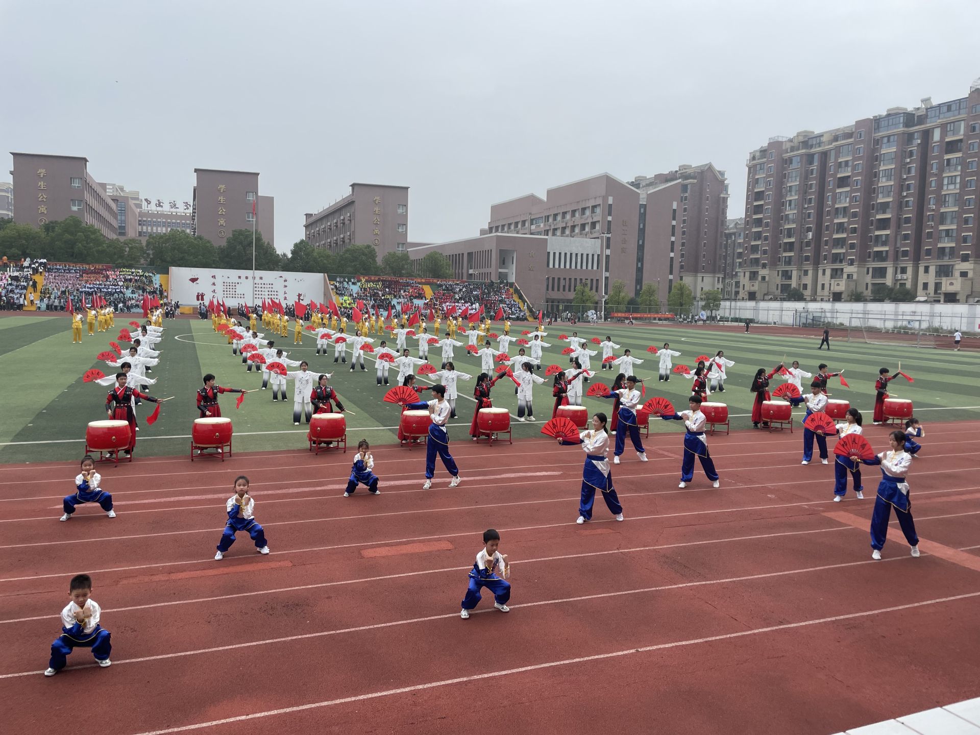 伴随着激昂的旋律,运动会正式拉开帷幕。国旗队、彩旗队、牌匾队及各学校代表队精神抖擞、口号嘹亮,迈着整齐的步伐依次通过主席台。大冶湖学校、第四实验学校、华中学校、新街小学的学生们表演了武术、篮球操、火流星等精彩纷呈的文体节目,赢得现场阵阵掌声。