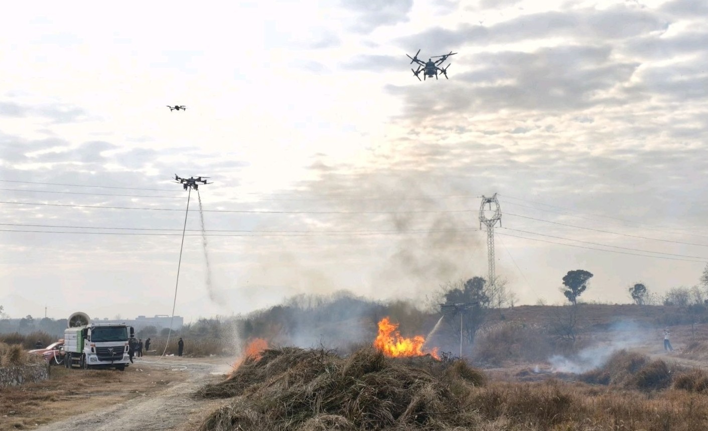 在应急救援领域,低空科技应用同样展现出强劲的实战能力。2025年12月,由市农发集团主办、农兴低空公司承办的森林防灭火“地空”联合应急演练在罗家桥街道走马山林区举行。演练中,侦查无人机快速定位火情、生成三维模型,灭火无人机精准投弹、高空洒水,与地面救援队伍形成高效协同作战体系,推动森林防灭火工作从“传统防控”向“科技赋能”转型,充分彰显了低空经济的应用价值。