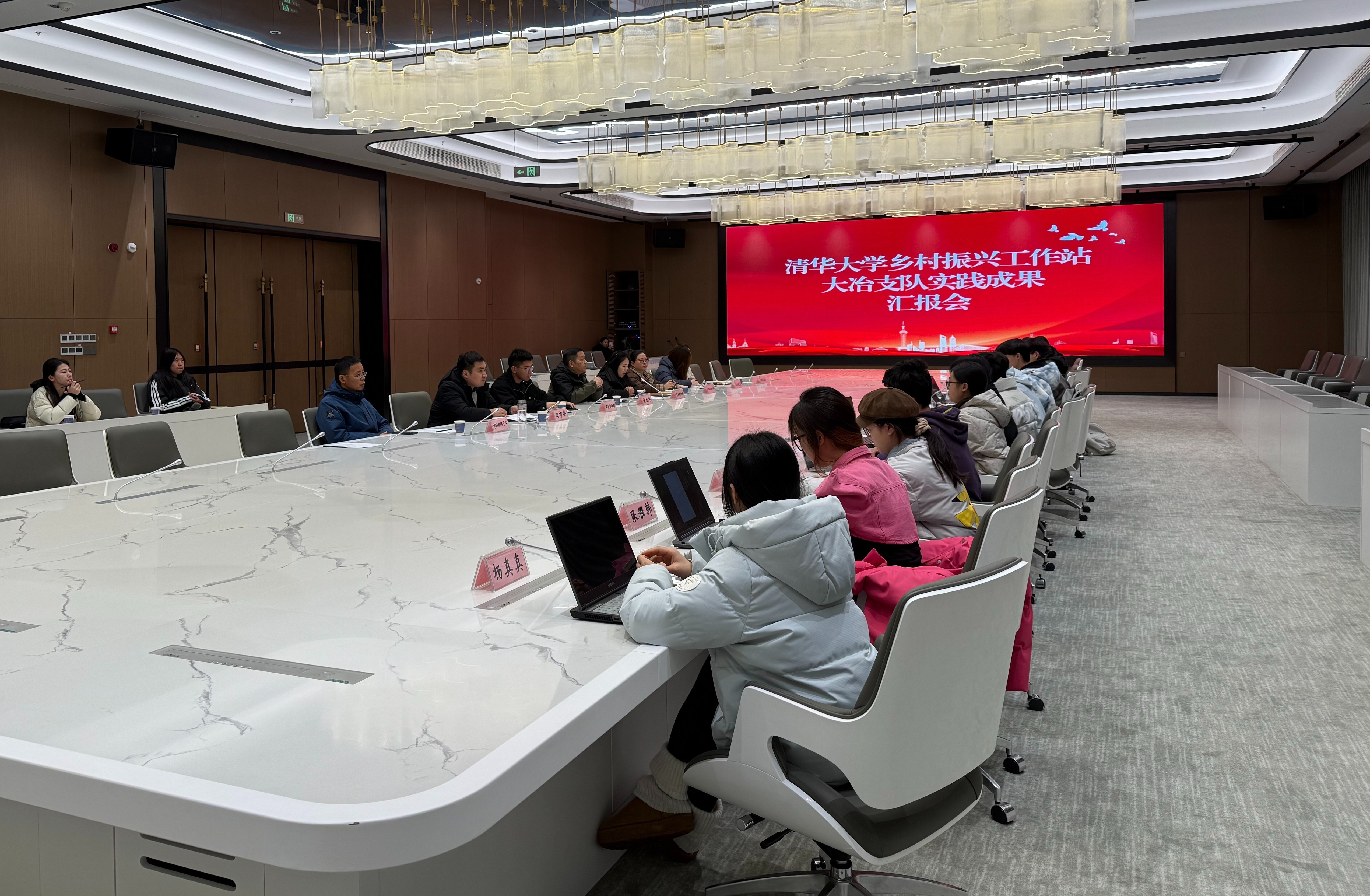 当天,清华大学乡村振兴工作站与我市相关部门举行成果汇报会,系统展示了11天来的多元调研成果与扎实实践收获。连日来,清华学子深入大冶乡村、企业、社区和田间地头,以脚步丈量乡情,以专业视角探寻文化赋能乡村振兴的多元路径。