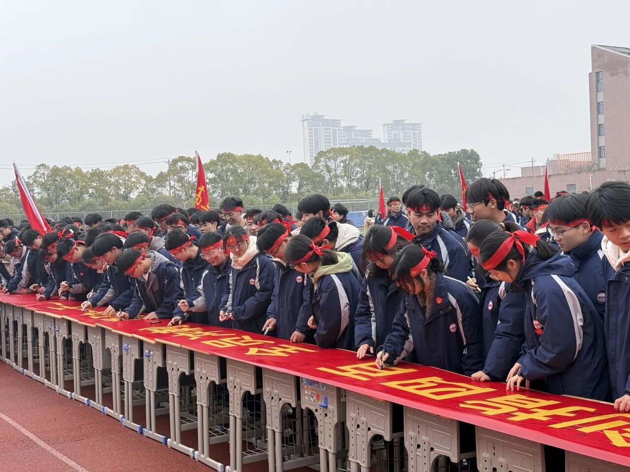最后,学生们在励志横幅上郑重签名,写下对未来的期许与对高考的承诺。每一笔都力透纸背,既是对青春的庄严承诺,更是面向未来的奋勇宣言。