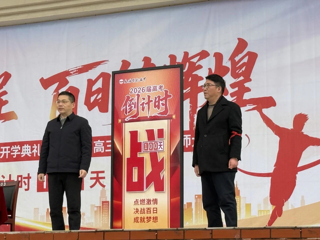 云上大冶报道(记者 熊业欣)2月27日,大冶市实验高中举行2026年春季开学典礼暨2026届高三年级百日誓师大会。高三全体师生及部分家长代表齐聚校园,共同吹响了决战高考百日冲刺的冲锋号。