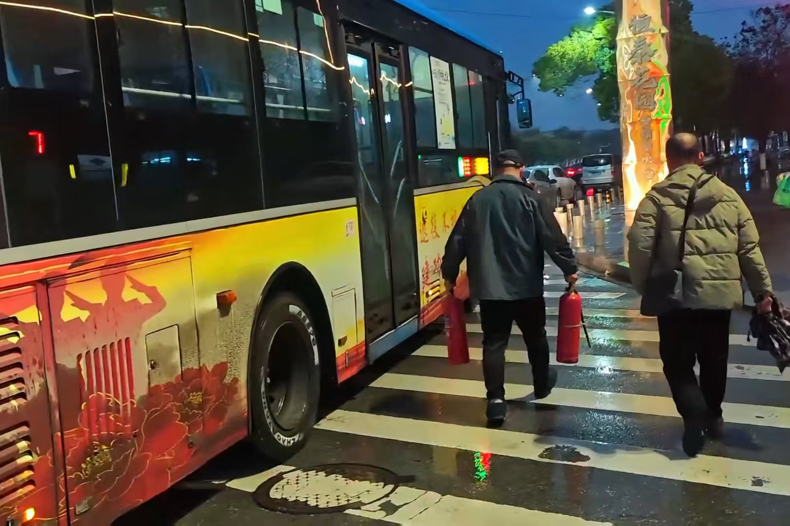 据了解,当时一辆燃油轿车在行驶过程中,发动机舱左前侧灯具处突然冒出浓烟并伴有明火,驾驶员发现异常后立即靠边停车。危急时刻,正好路过的10路公交车司机见状,迅速将公交车安全停靠,拎起车载灭火器冲上前,对准起火点进行扑救,成功将火势扑灭在初起阶段。