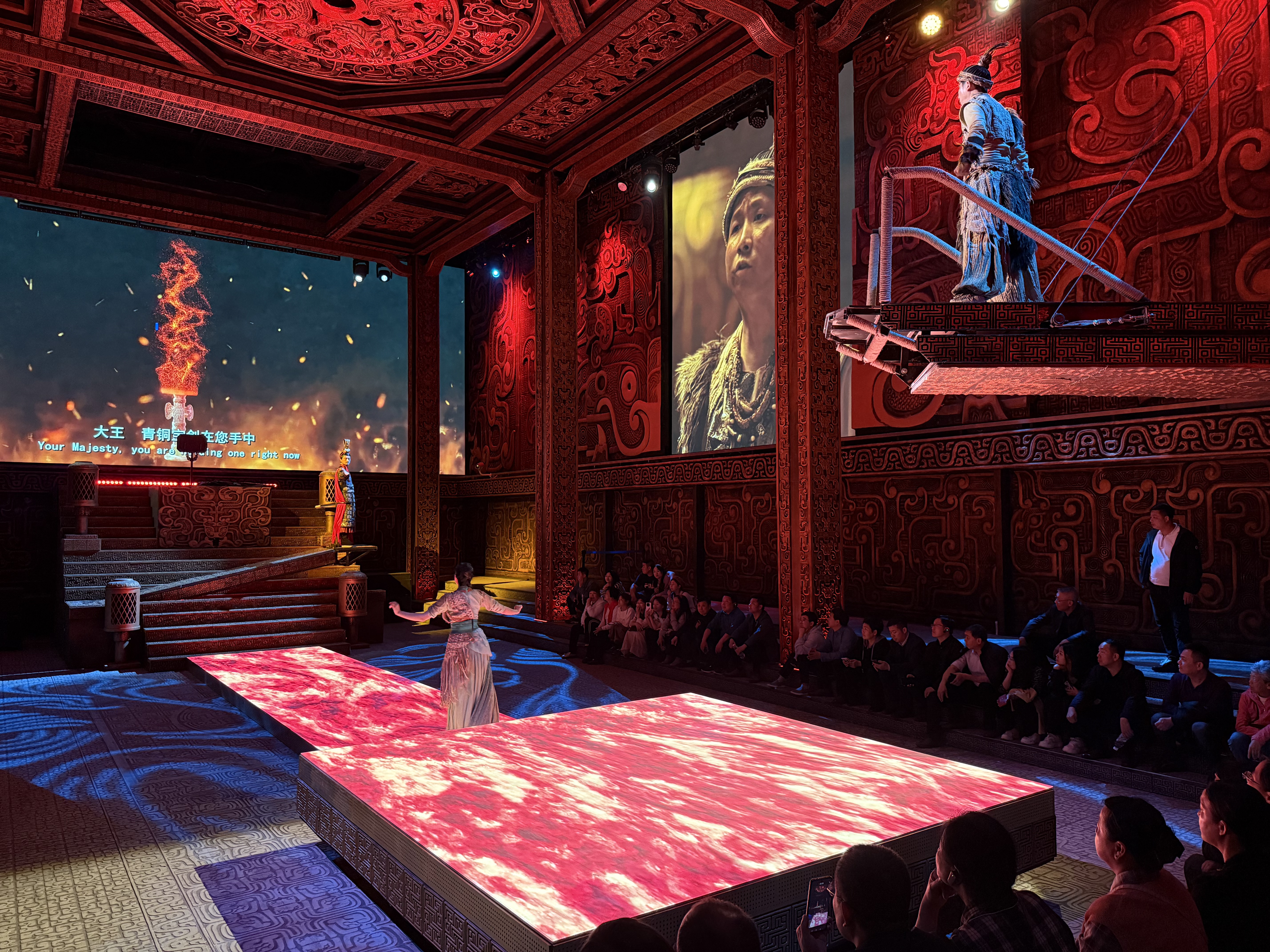 调研组首站来到铜绿山古铜矿遗址博物馆,深入了解我国迄今为止发现的采冶延续时间最长、开采规模最大、采冶技术水平最高、采冶链最完整、保存最完好的古铜矿遗址,感受千年青铜文明的深厚积淀。大家观看了沉浸式戏剧《因为青铜》,该剧融合现代声光电技术,配合演员的生动演绎,带领现场观众“穿越”至楚国时期,直观感受古代冶炼、铸剑的历史场景。
