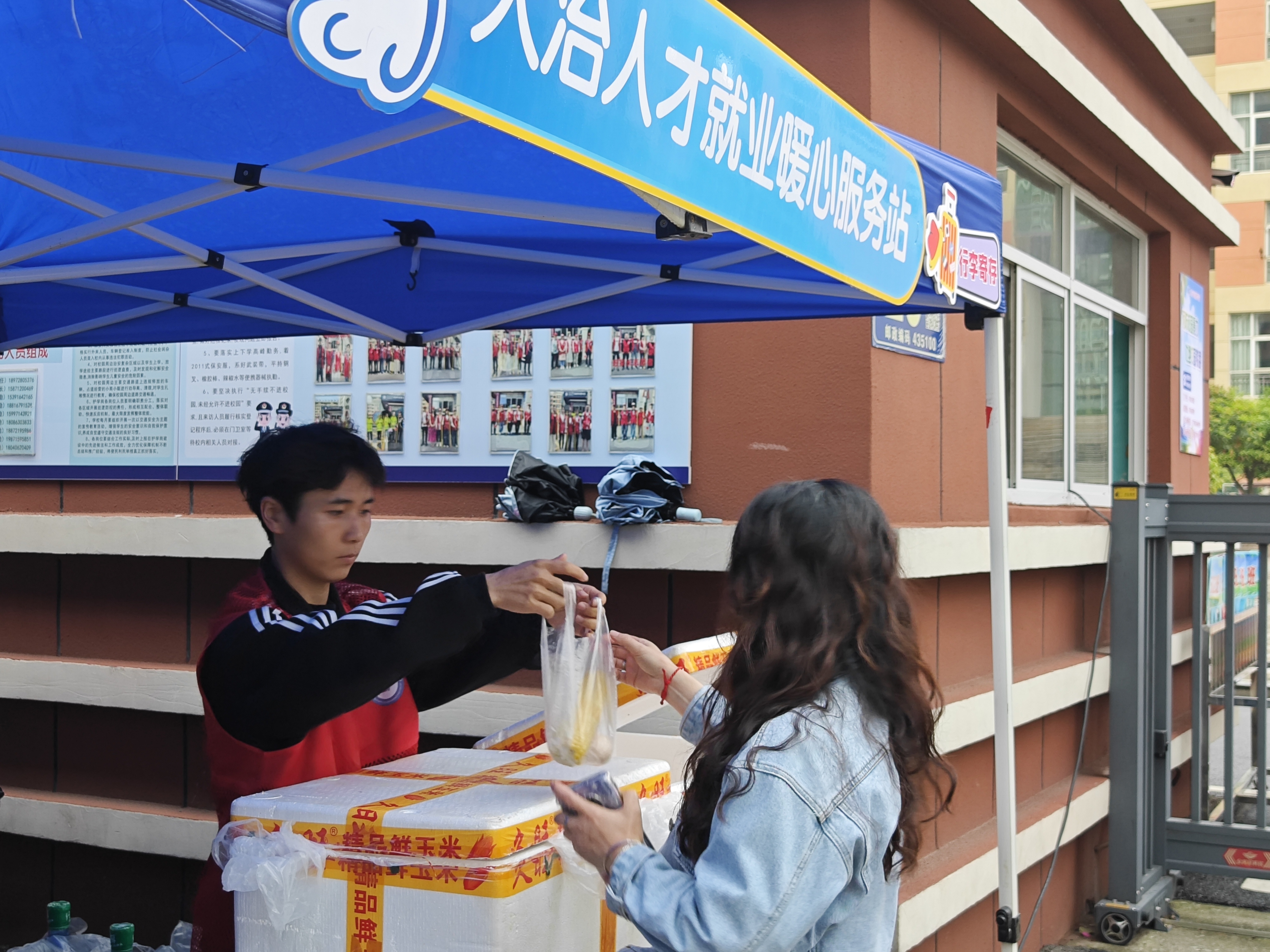 为保障考试平稳有序,市人社局提前筹备,在各考点设立暖心驿站。现场开展就业创业政策宣传以及重点企业招聘推介工作,同时免费为考生提供茶水、早点、咖啡、雨衣等物资以及行李寄存服务。