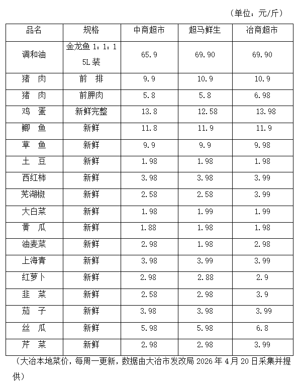 本周菜价参考2026年(4月21日~4月27日)