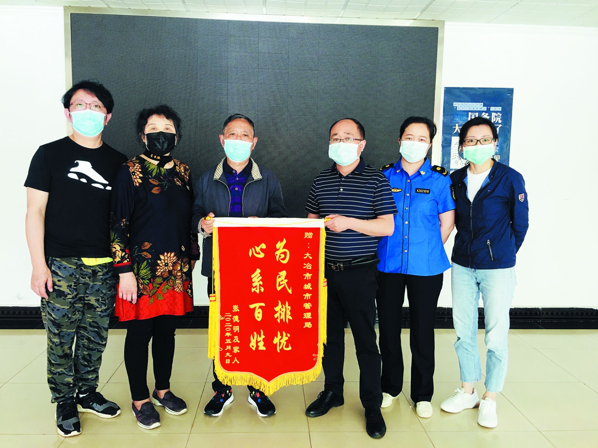 杨爹爹送锦旗 感谢市城管局