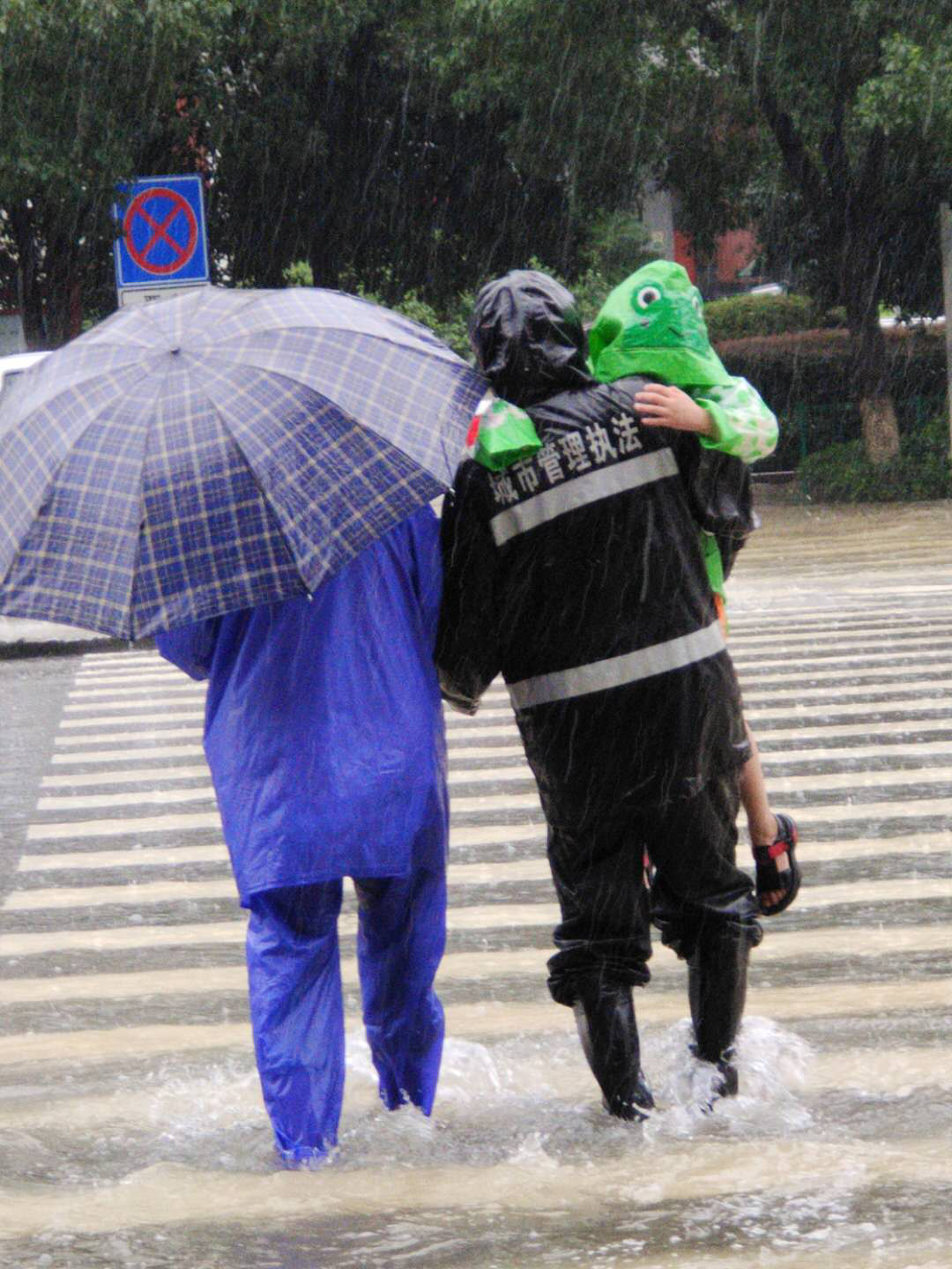 风雨中的城管人