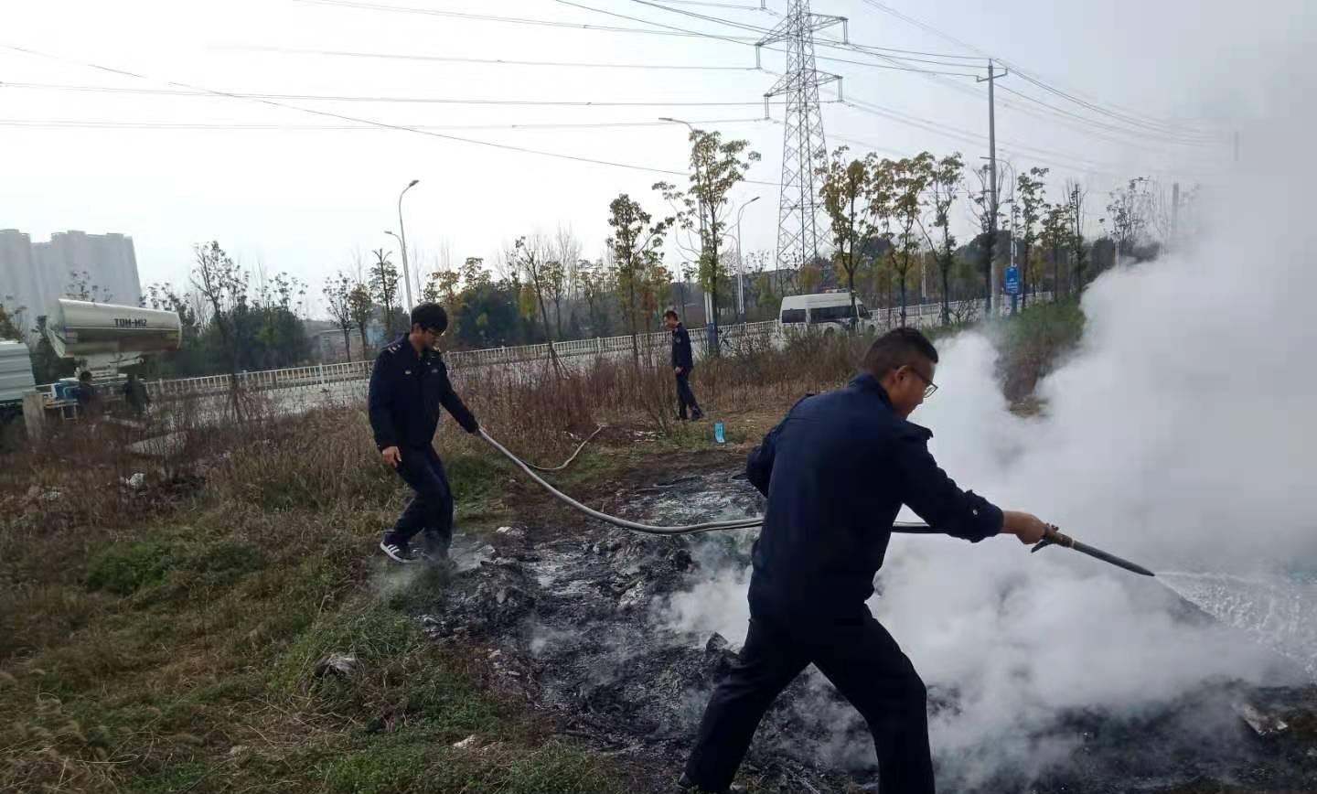 大年初四有人露天焚烧垃圾 城管队员闻讯奋力灭火