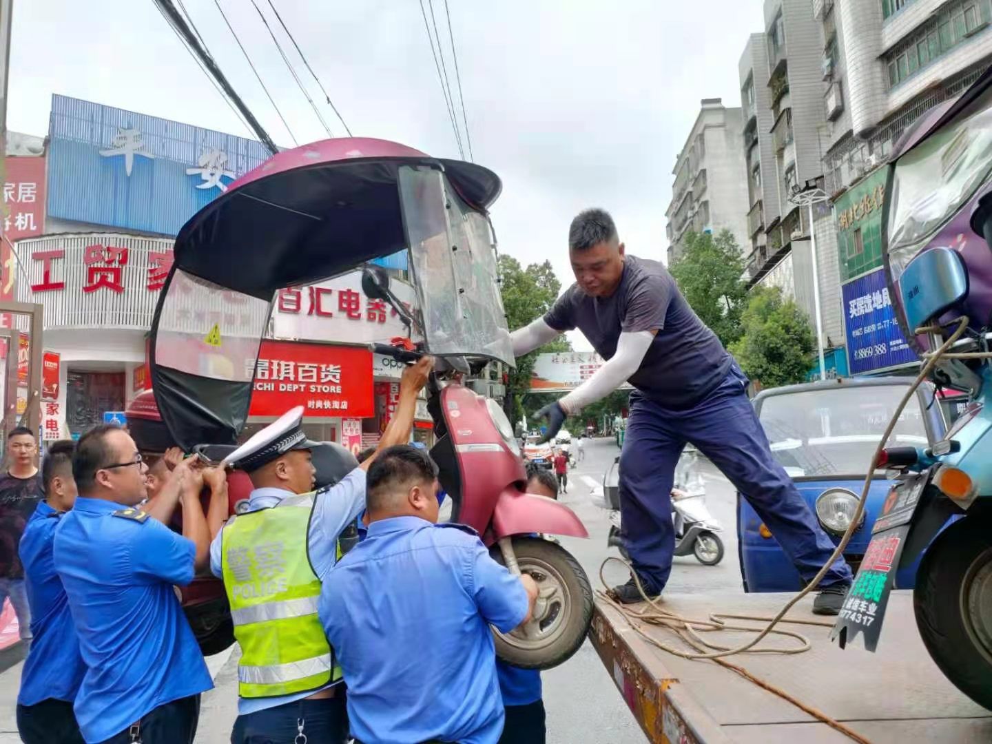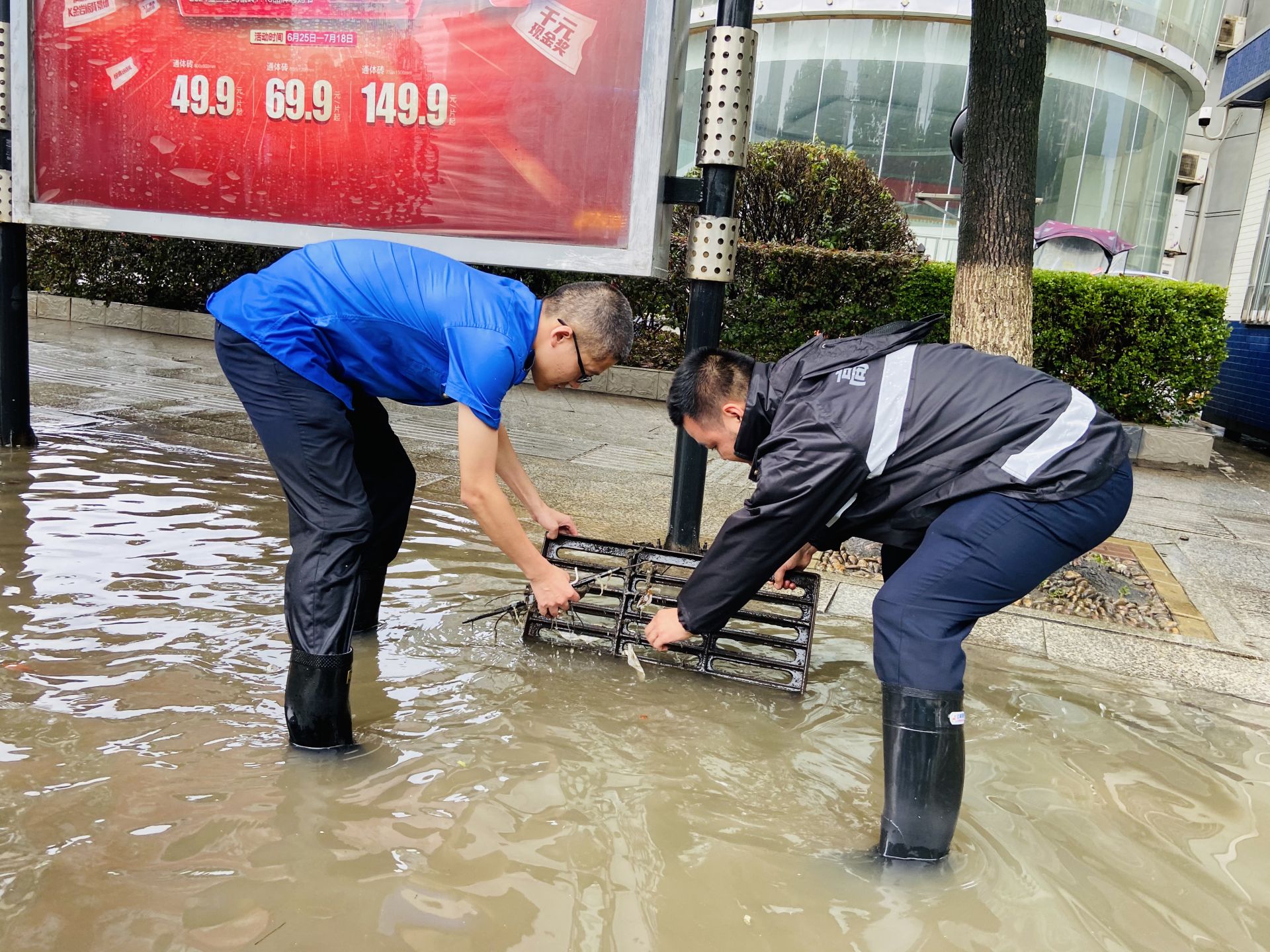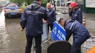 强降雨来袭 城管交警全力保畅通