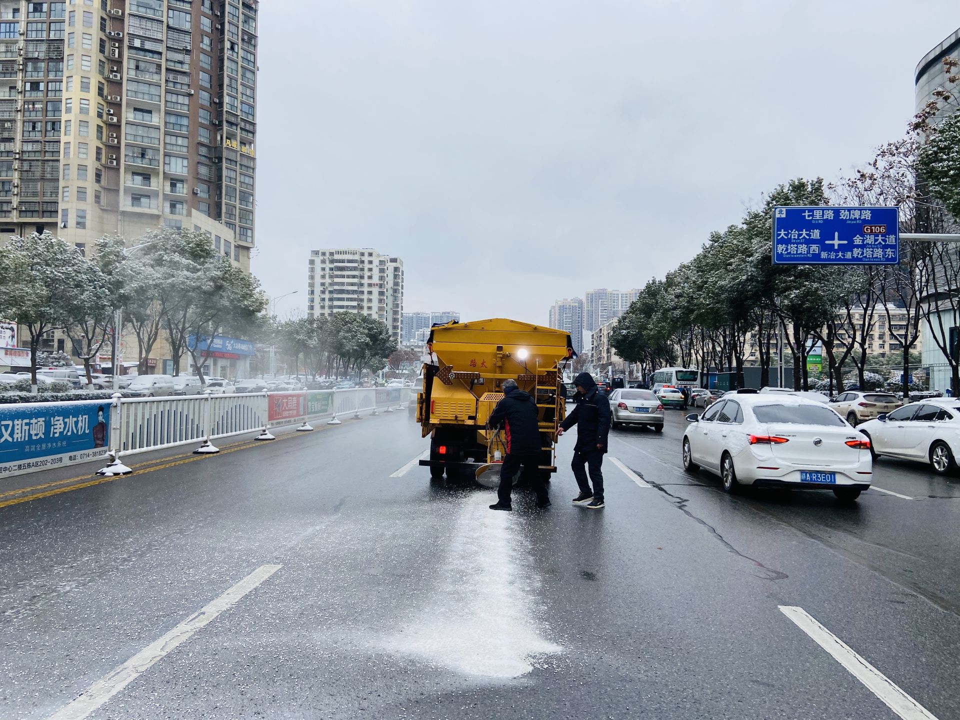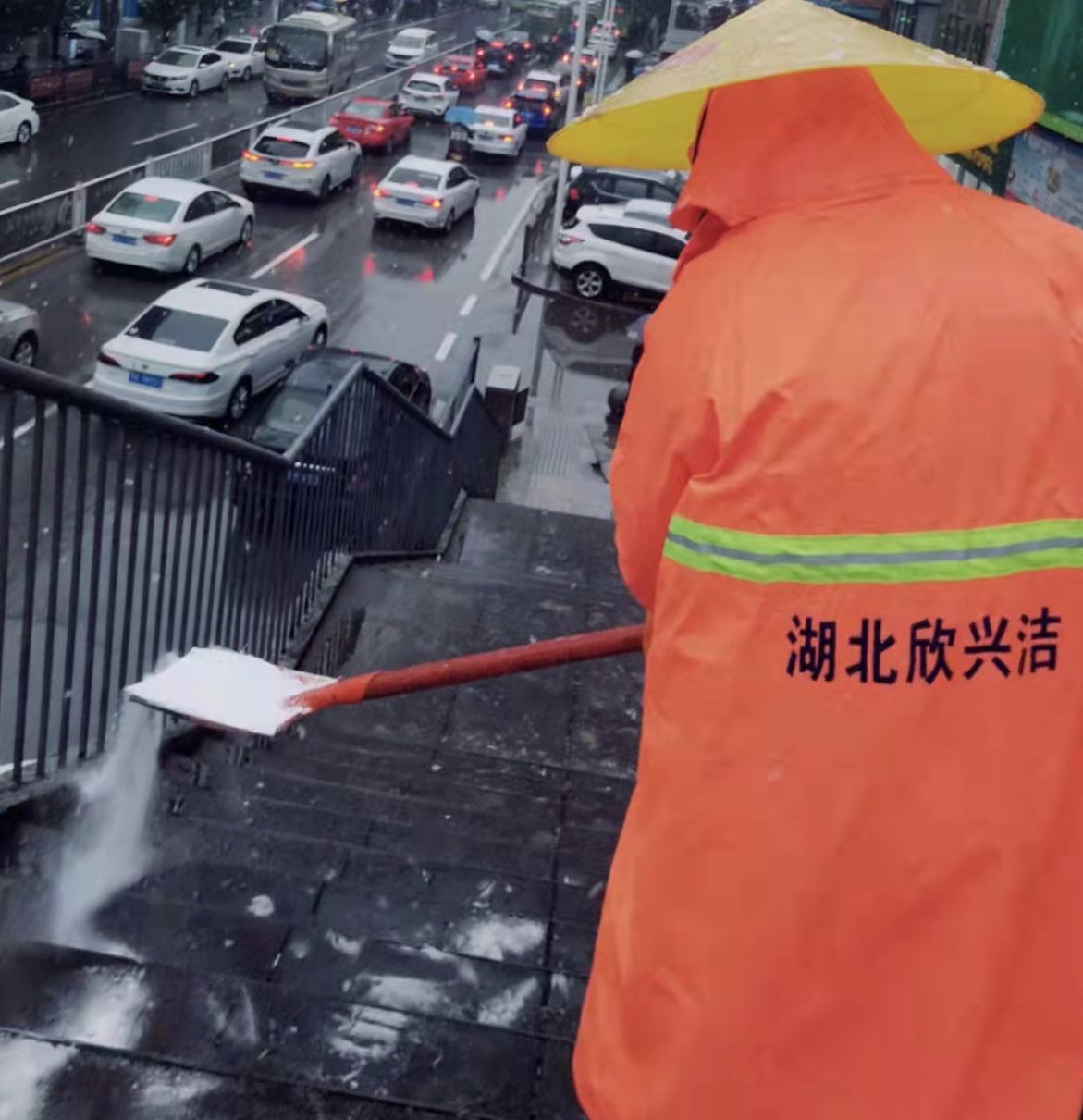 环卫公司全力清除路边残雪
