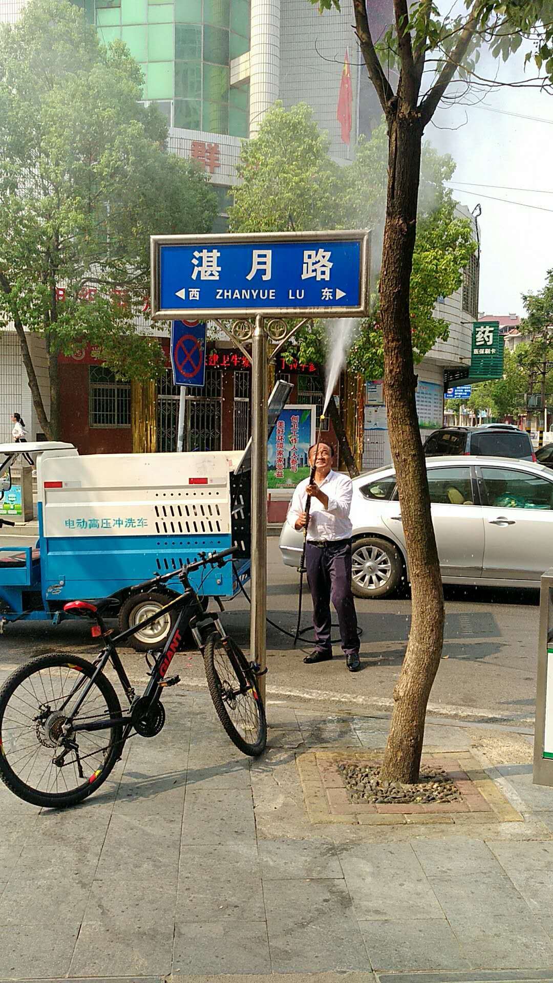 市民政局清洗城区路名牌 助力创卫迎“国检”
