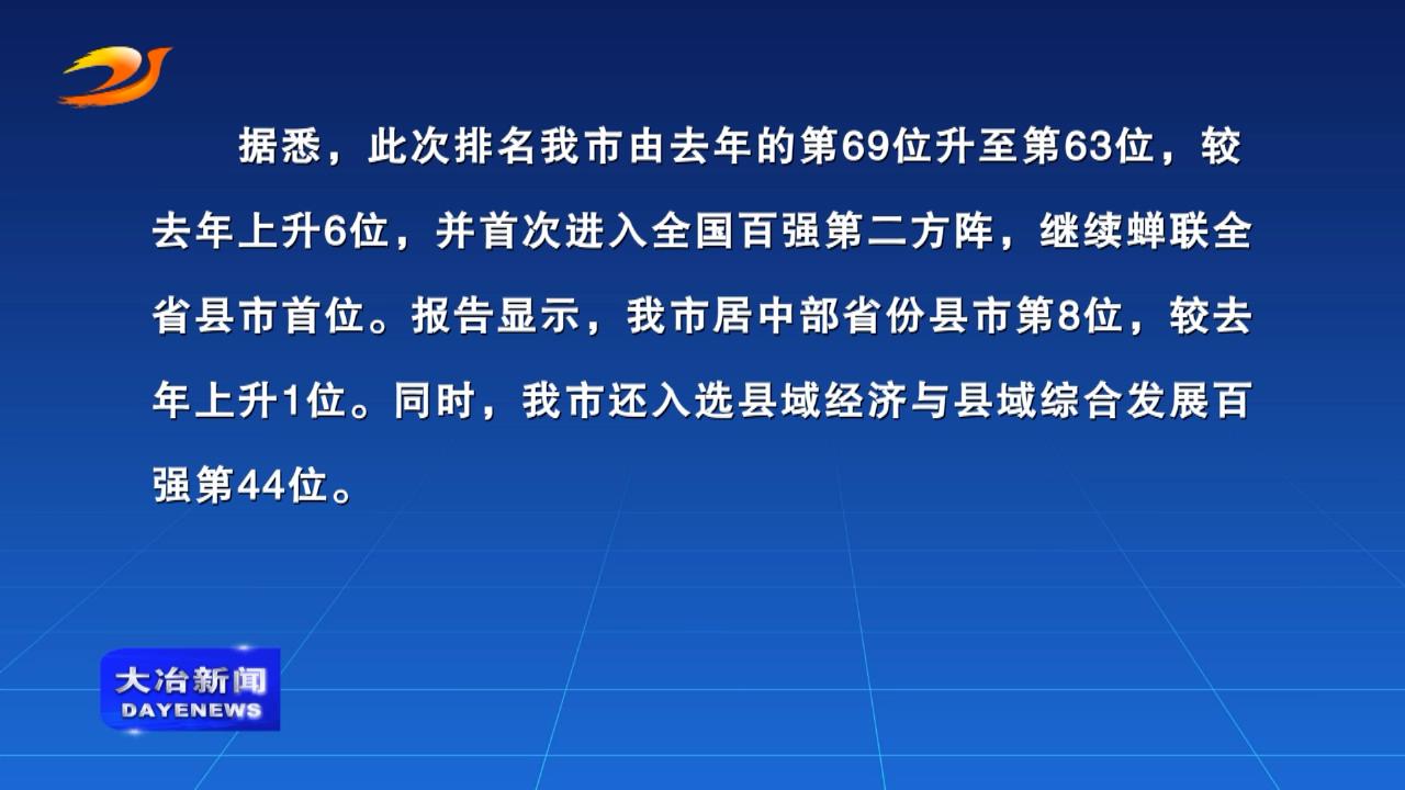 简讯 :我市3乡镇上榜中国中部乡镇100强